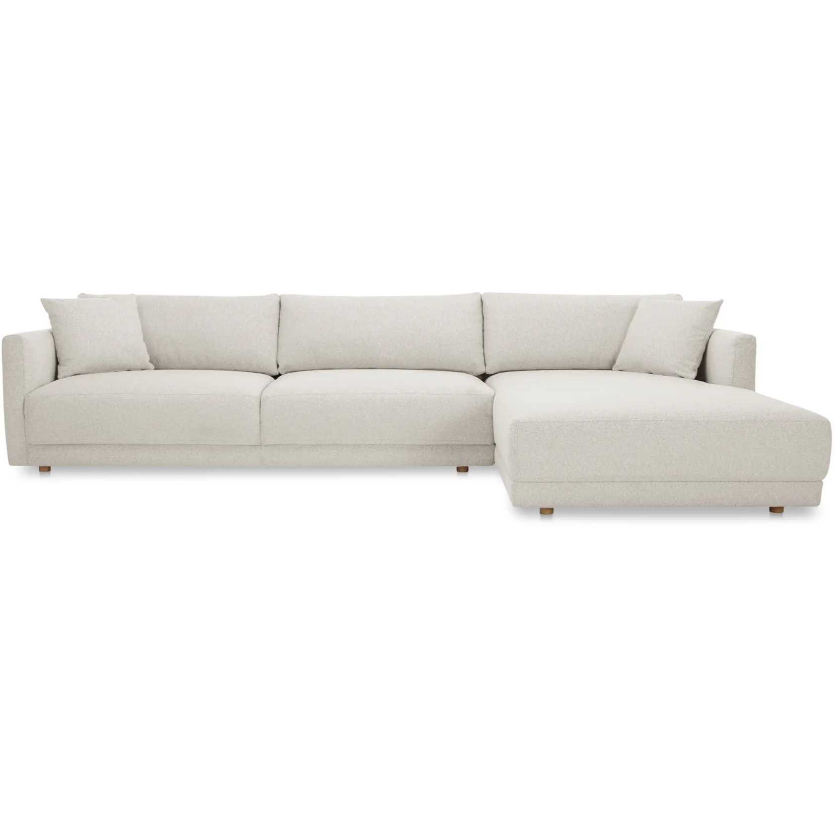 The Brenner sectional brings together style and sustainability. A larger profile is finished in a boucle, velvet and wool blend as warm tones and textured materials reflect traditional, heirloom-like qualities.