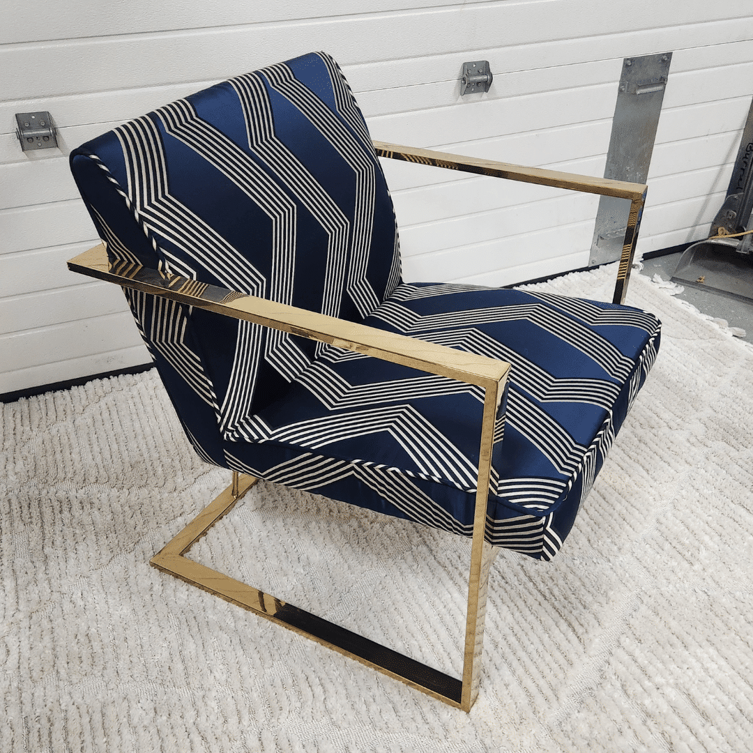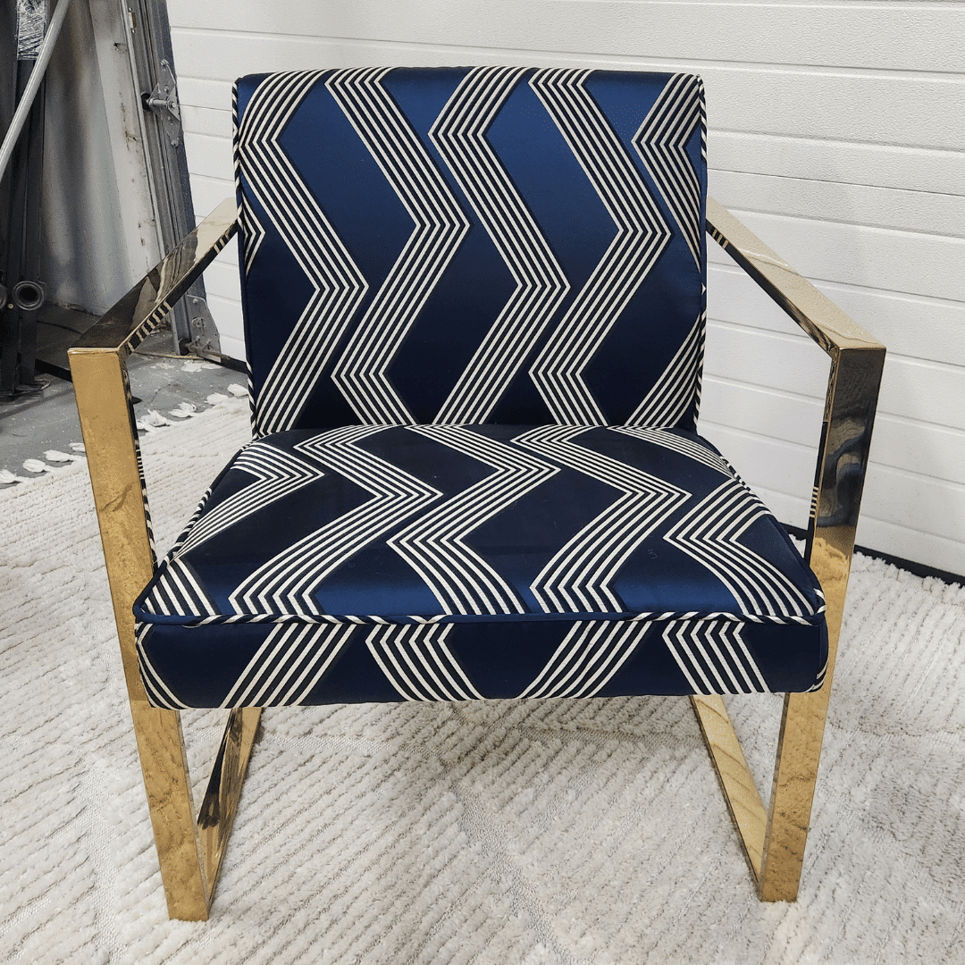 ‣ Navy upholstery with gold pattern