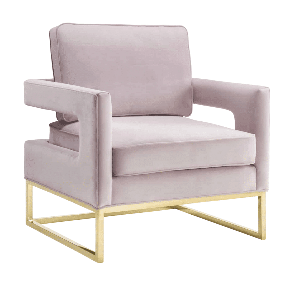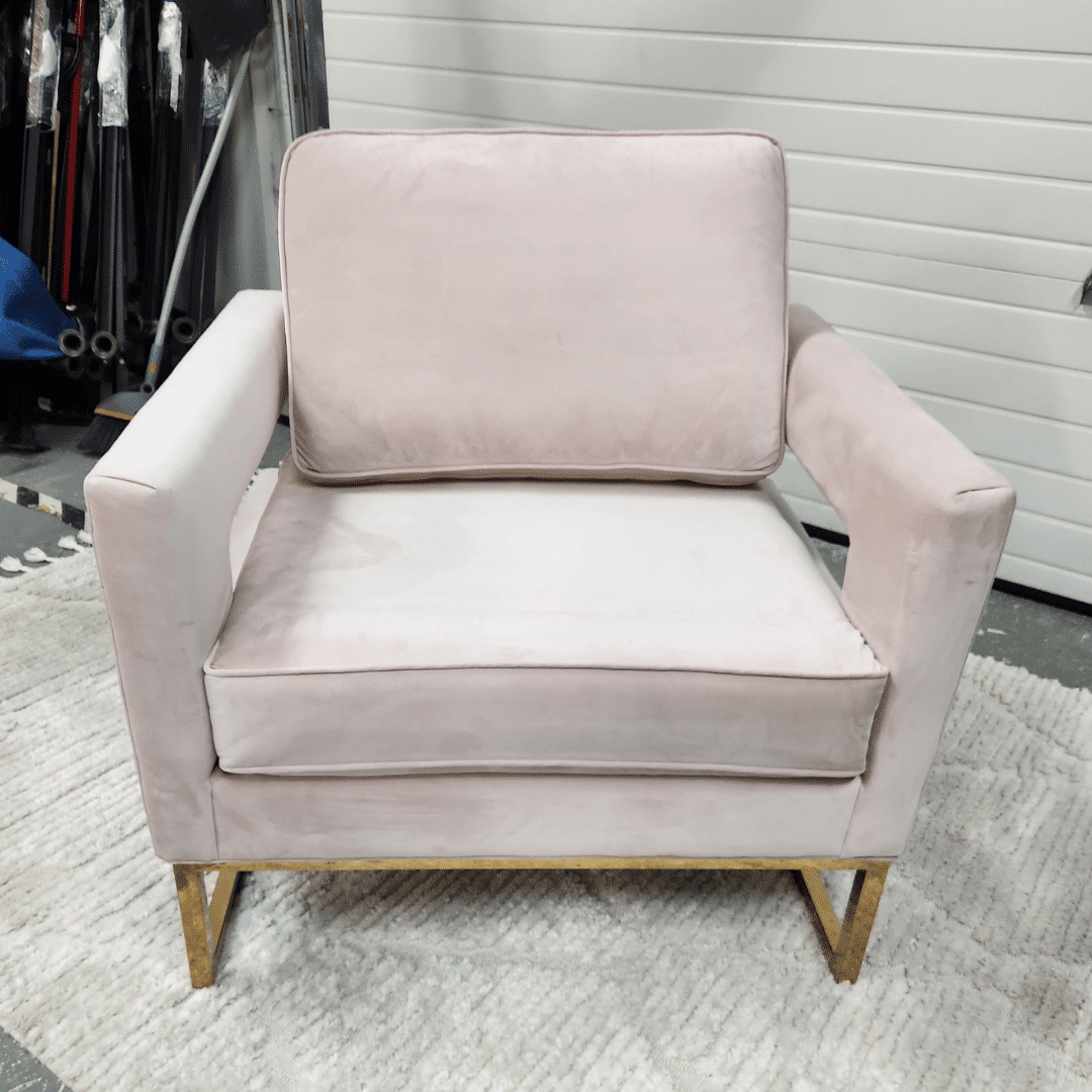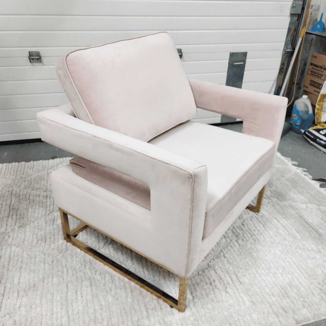 ‣ Blush velvet upholstery